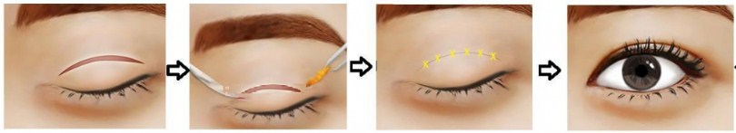 Bác sĩ sẽ rạch một đường mảnh và nhỏ nằm sát mí mắt qua đó lấy bỏ phần da chùng, mỡ thừa đã được xác định từ trước
